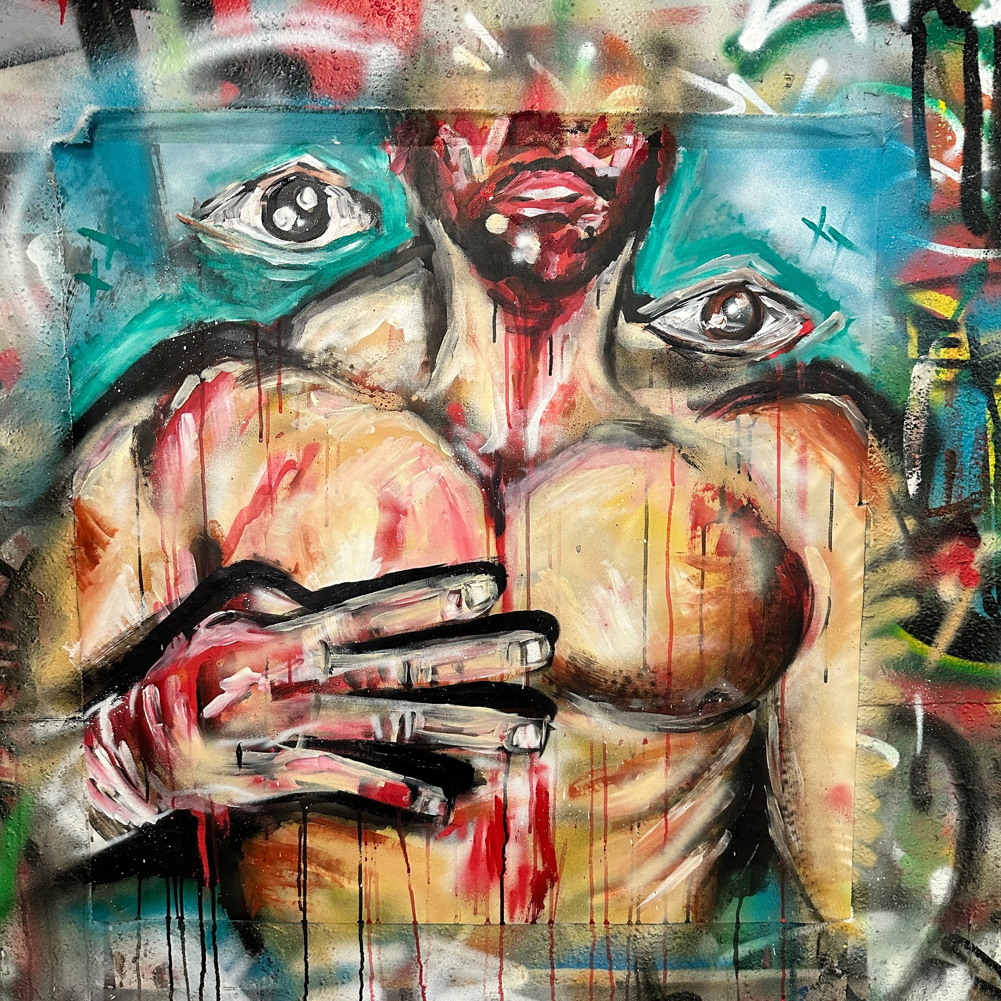 Original painting on canvas 31x31" painted with acrylics and spray paint Unstretched canvas