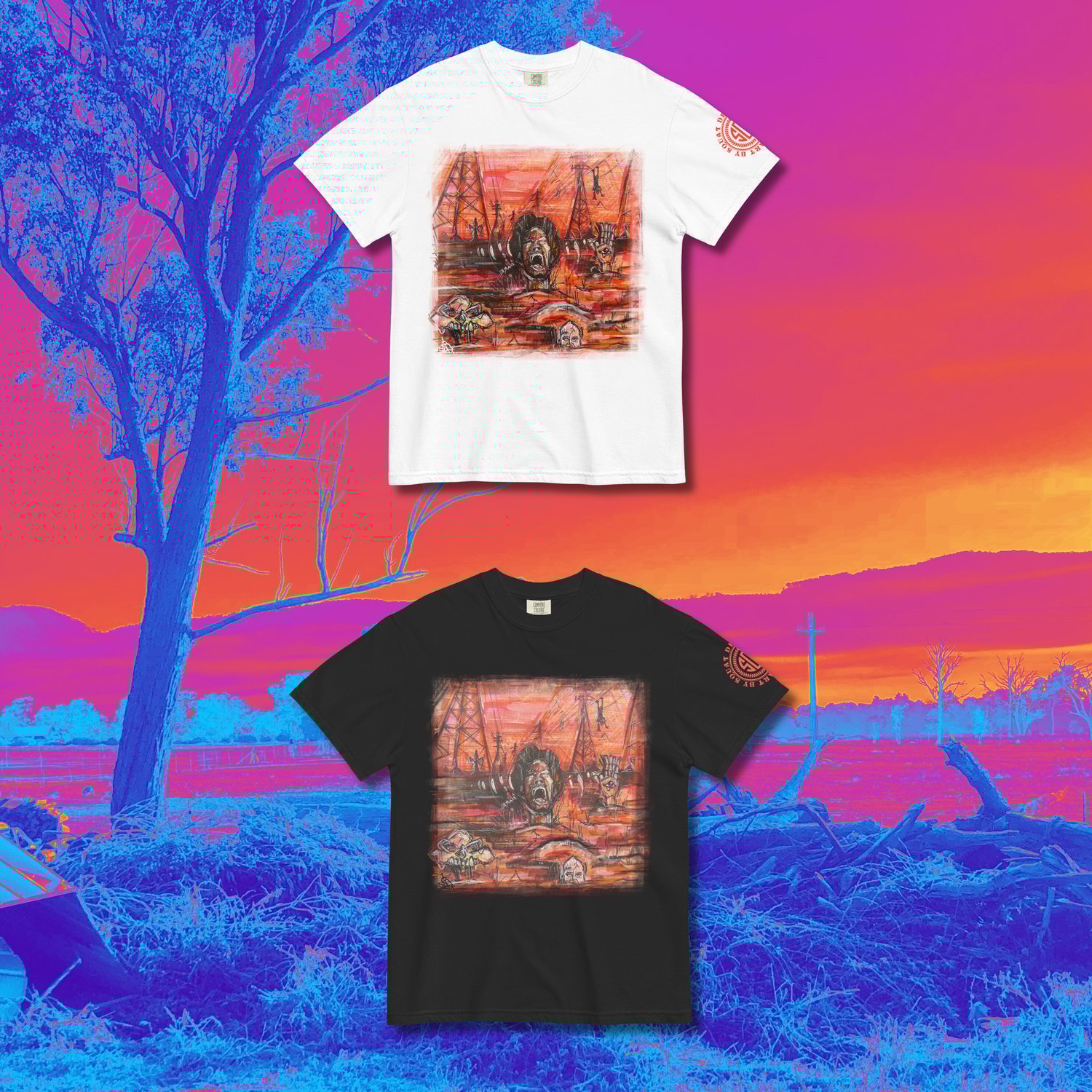 WHITE & BLACK X-LARGE FRONT ART PRINT LOGO SLEEVE PRINT SIZING FROM S-4XL HEAVYWEIGHT COTTON RELAXED FIT TRUE TO SIZE PRINTED ON COMFORT COLOURS
