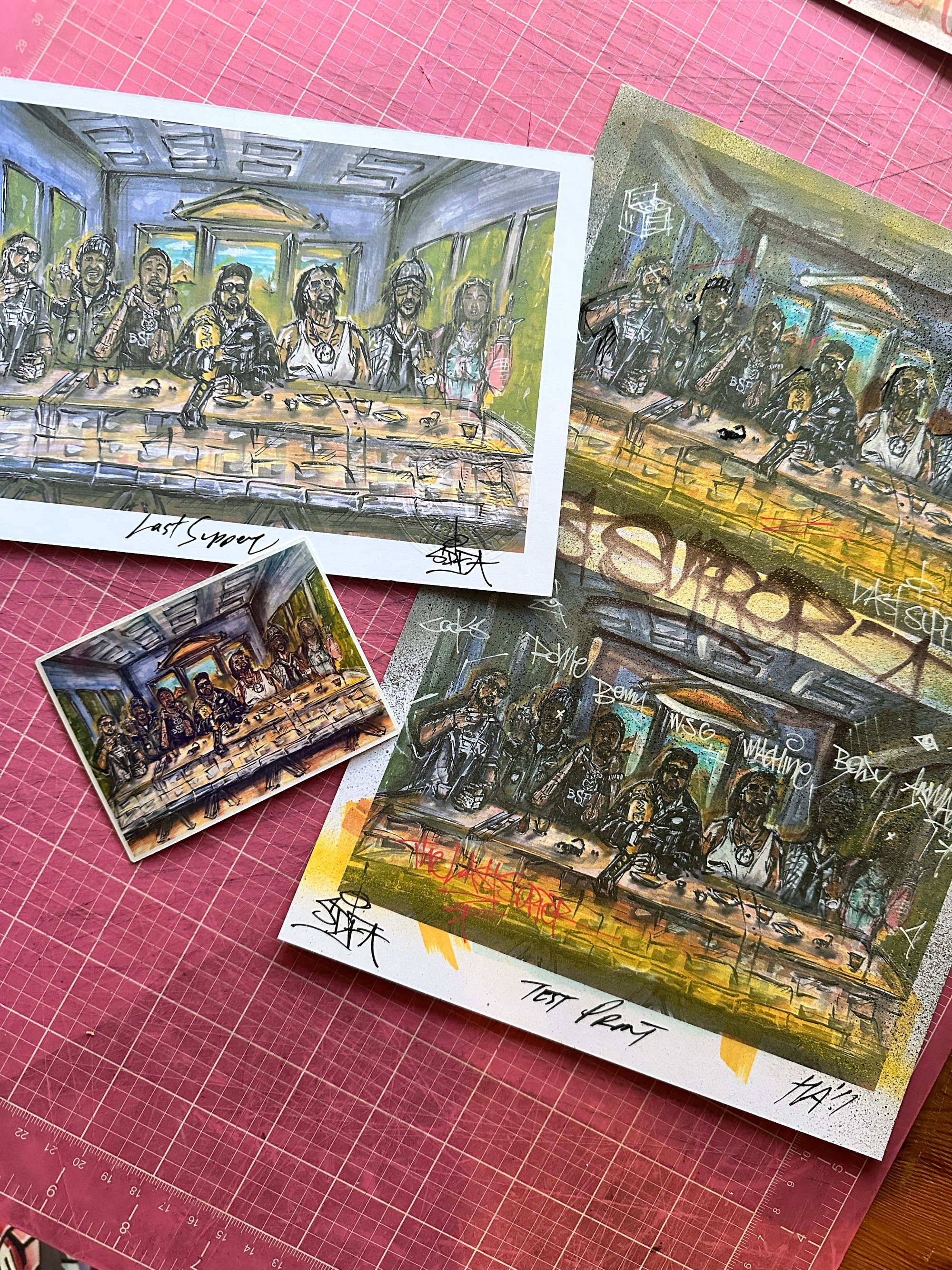 SCORPION LAST SUPPER / 1 of 1 HAND ALTERED / 8x11+ and more
